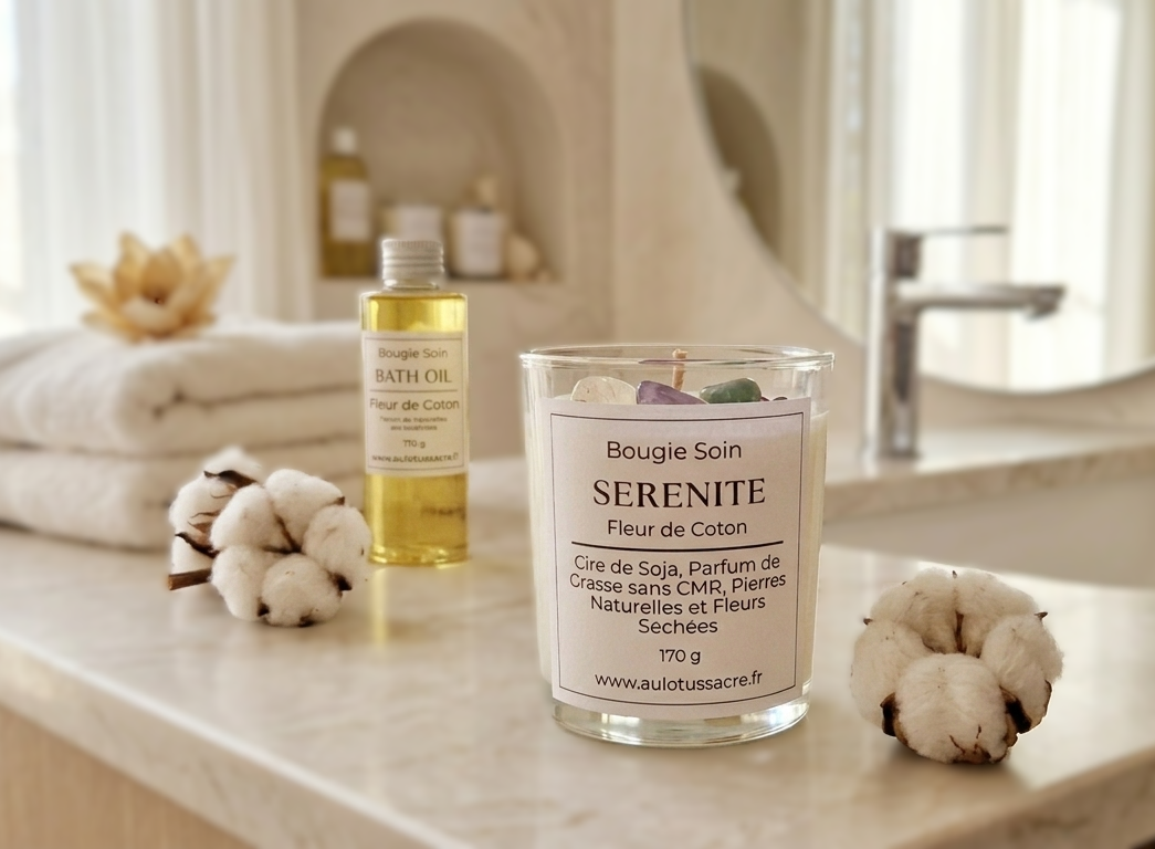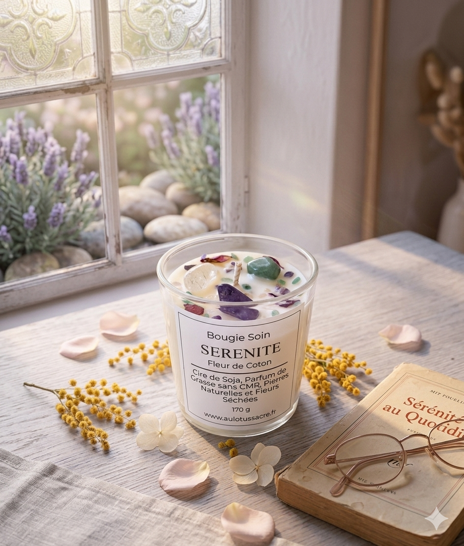 Bougie Soin Sérénité 170g – Bougie artisanale parfumée, fait main en Alsace